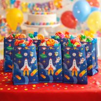 Ces piques à gâteau pas chers sont la solution idéale pour une décoration anniversaire simple, rapide et qui en met plein les yeux. Que ce soit pour un gâteau fait maison ou une pâtisserie achetée, ces accessoires donneront un effet waouh immédiat. Associez-les à nos assiettes, gobelets et serviettes thème Espace pour une décoration d’anniversaire enfant parfaitement assortie.