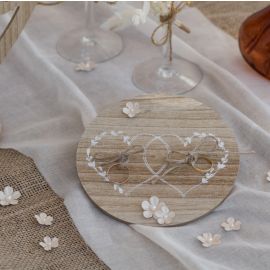 Plan de table mariage naturel en bois et corde, dimensions 45 x 48 cm