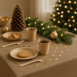Ce plateau jetable en carton couleur taupe est à accorder avec notre large choix de vaisselle jetable de la même couleur