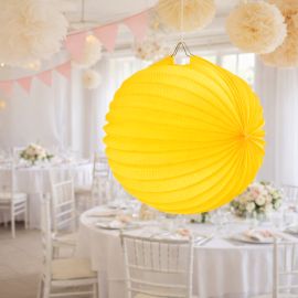 pompon satin jaune en papier de soie 15 cm - pas cher
