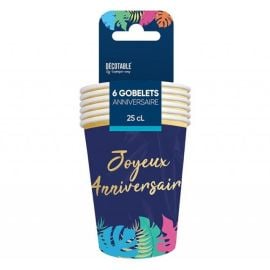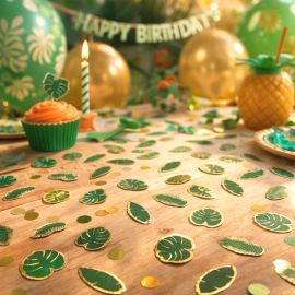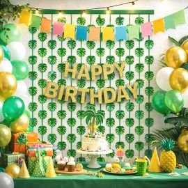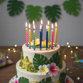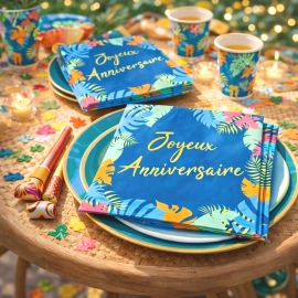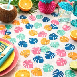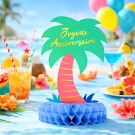 Présentoir 3 Etages en carton Tropical 34cm, Choisissez ce présentoir de 3 étages pour vos cups cake , entremets de fête idéal lors d'un theme mariage sur les Tropiques