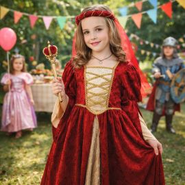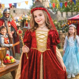 Plongez dans le passé avec notre robe médiévale brune pour fille, taille 140 cm. Ce costume deux pièces capture l'essence des temps anciens et transformera votre enfant en une véritable dame du royaume.