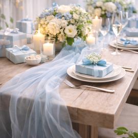 Couleur : Bleu ciel, une rosace a pois, une rosace a chevrons, et une unie
