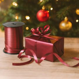 Le Rouleau de tulle pailleté 15cm bordeaux est proposé en rouleau de 9 mètres de long à prix économique pour vos nombreuses decorations de mariage