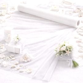 Le rouleau tulle mariage indispensable pour une décoration de table réussie.