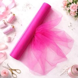 Le rouleau de tulle Rose est à associer à notre large choix de décoration Rose pour votre mariage : Noeuds, Rubans..