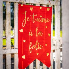 Ruban effiloché mousseline Je t'Aime Rouge et Blanc