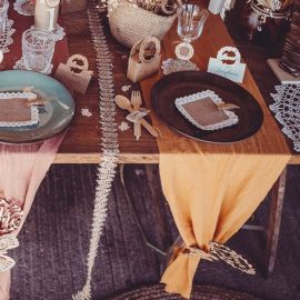 Le Ruban gaze de coton Moutarde 3m pourra être posé sur vos tables de fête, ou bien autour de vos contenants dragees comme accessoire de décoration mariage