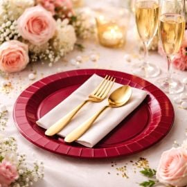 Pensez également à assortir cette serviette papier Bordeaux avec notre large choix de vaisselle jetable Bordeaux
