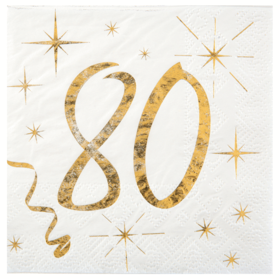 Lot de 20 serviettes en papier Anniversaire 80 ans OR