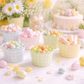 Apportez fraîcheur et douceur à votre décoration de table avec ces serviettes en papier déco Pâques festonnées Vichy pastel 33x33 cm x16. Déclinées en quatre couleurs pastel assorties – rose, bleu, vert et jaune – et ornées d’un motif Vichy intemporel, elles insufflent instantanément une ambiance printanière joyeuse et lumineuse. Le galon festonné assorti souligne leur finition soignée et en fait un véritable élément décoratif pour une table de Pâques, un goûter d’enfants ou une réception de printemps.