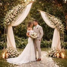 Leur finition métal doré apporte une touche chic et lumineuse, idéale pour un mariage romantique, bohème, chic ou contemporain. Faciles à décorer avec des fleurs, feuillages, voilages, ballons ou guirlandes lumineuses, ces vantaux s’adaptent à toutes les ambiances et deviennent rapidement le point central de l’événement. Leur modularité permet de les utiliser ensemble pour une grande arche ou séparément pour structurer différents espaces.