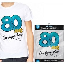 Coup de coeur sur le Tee Shirt On Signe Tous 80 Ans, Dédicacez ce Tee shirt anniversaire humoristique 80 Ans pour l'anniversaire de vos proches et amis