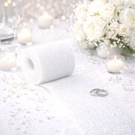 Optez pour la Tenture mariage pailleté Blanc 75cm un grand rouleau de tulle mariage blanc avec ses paillettes Blanches
