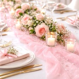 Tulle mariage pailleté rose 15cm Sublimez votre décoration mariage avec ce rouleau de tulle souple pailleté Rose