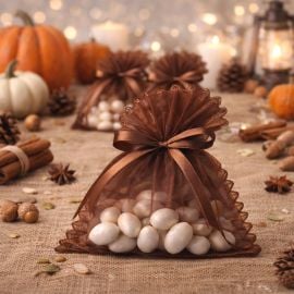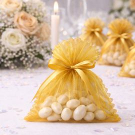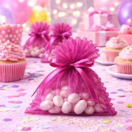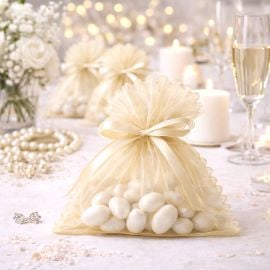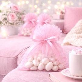 Placez ces contenants à dragées en tulle sur vos tables de fêtes et buffets