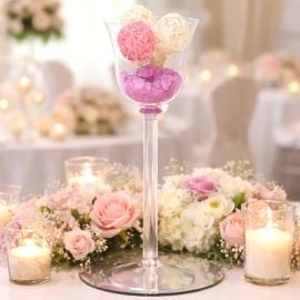 Le Vase en verre mariage Augustine vous séduira comme centre de table, vous pourrez le remplir de fleurs, de boules de fleurs, de billes, de gravier, sable décoratif , ou encore de bougies LED pour un des plus bels effets