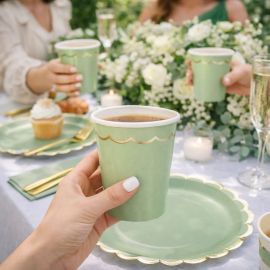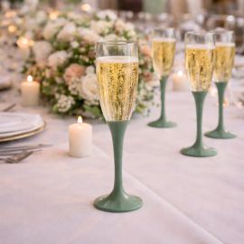 Ce verre à vin jetable Vert sauge est à assortir avec le reste de notre vaisselle jetable pas cher :flûtes à champagne, gobelets plastique...
