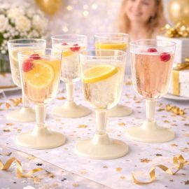 Ces verres à pied en plastique réutilisables permettent de dresser une table élégante sans contrainte. Solides, esthétiques et faciles à assortir à tous les thèmes de décoration, ils offrent un excellent rapport qualité-prix. Une alternative idéale au verre classique pour des événements réussis, pratiques et pas cher.