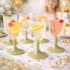 Alliez élégance et praticité avec ces verres à pied en plastique réutilisables, parfaits pour toutes vos réceptions festives. Leur design sobre et raffiné, avec un pied légèrement teinté, apporte une touche chic à vos tables de mariage, anniversaire, fête familiale ou événement convivial, tout en évitant la casse du verre traditionnel. Idéals pour trinquer en toute sérénité, ils s’adaptent aussi bien aux adultes qu’aux grandes tablées festives.